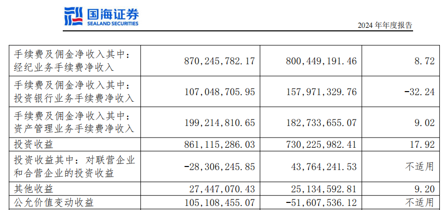 2024年国海证券的业绩“双增长”依赖经纪业务(+8.72%)、资管业务(+9.02%)及自营业务(+17.92%)的阶段性回暖,而投行业务连续四年下滑,收入1.07亿元较2020年缩水74.6%,折射出股权融资收缩周期中的被动承压。值得注意的是,四季度贡献57%的净利润,显示市场行情对自营业务的强驱动,但“靠天吃饭”的盈利模式仍未根本改变。
