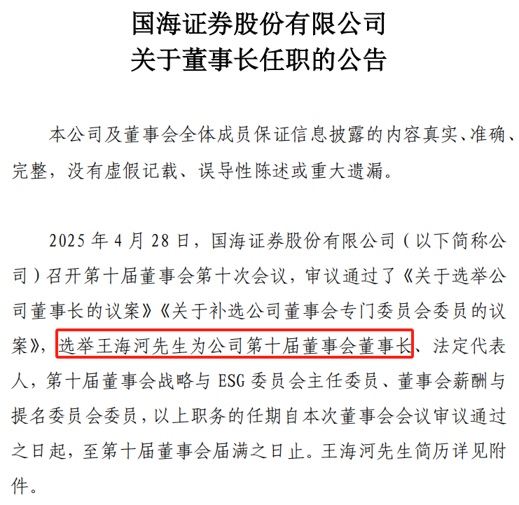 新任董事长王海河的履历凸显出监管层对国海证券“补短板”的意图。这位1979年出生的管理学硕士,拥有国家开发银行信用风险管理、广西投资集团风控法务等核心岗位经验,曾任国富人寿董事长,且2017-2024年兼任国海证券董事,对公司情况并不陌生。其职业生涯贯穿“风险控制”主线:在国开行参与信用风险建模,在广西投资集团主导风控体系搭建,这些经历被视为破解国海证券内控顽疾的关键优势。